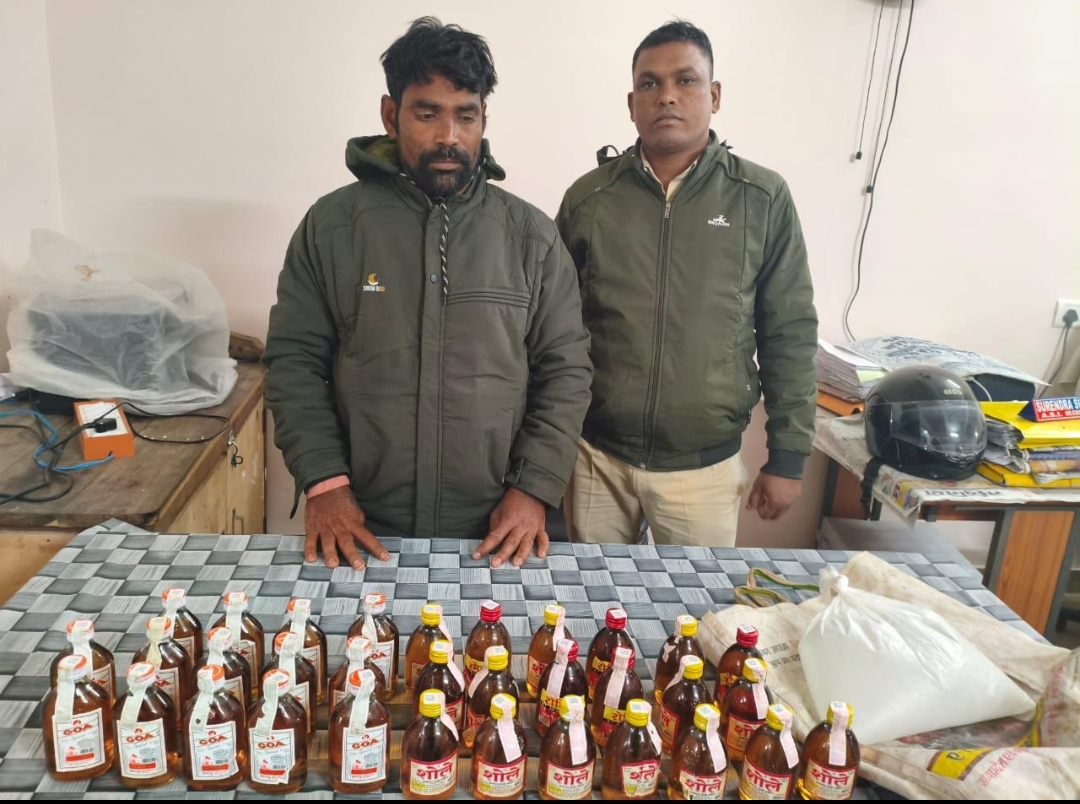 ● आरोपी से ₹4700 कीमत मूल्य का 19 नग देशी मसाला, 15 नग गोवा स्पेशल व्हीस्की एवं 05 लीटर हांथ भट्ठी महुआ शराब किया गया जप्त