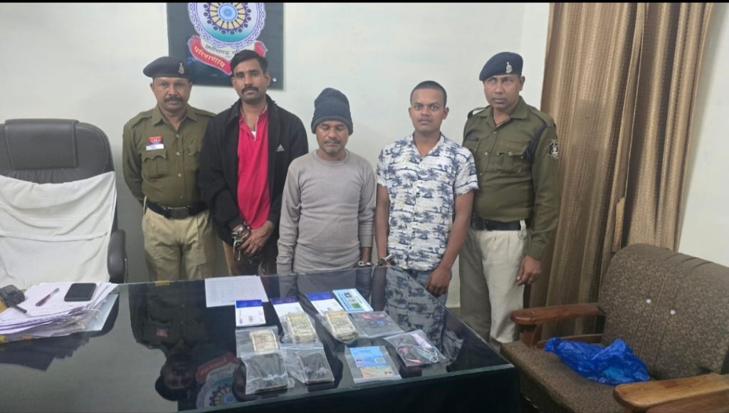 नाम पता आरोपीगण – (01) बिशेश्वर मारकंडे उर्फ बिसेसर मारकंडे उर्फ गुप्ता पिता संपत लाल उम्र 58 वर्ष (02) प्रमोद कुमार मारकंडे उर्फ राहुल पिता बिशेश्वर मारकंडे उम्र 23 वर्ष दोनों निवासी ग्राम चारभाटा ठेकुआ थाना रानीतराई जिला दुर्ग (03) हेमंत कुमार साहू पिता स्वर्गीय परमेश्वर साहू उम्र 37 वर्ष पता मकान नंबर 214 शुभम के मार्ट के सामने, सरोना चौक, थाना आमानाका जिला रायपुर