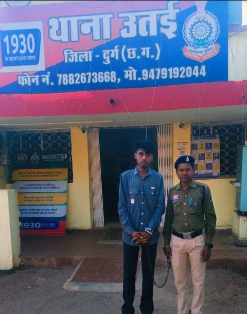 स्थिति की गंभीरता को देखते हुए मौके पर तैनात पुलिस बल द्वारा तत्काल घेराबंदी कर आरोपी को हिरासत में लिया गया। पूछताछ में आरोपी ने अपना नाम भागवत वर्मा, पिता छन्नू वर्मा, उम्र 19 वर्ष, निवासी ग्राम खोपली, थाना उतई बताया।